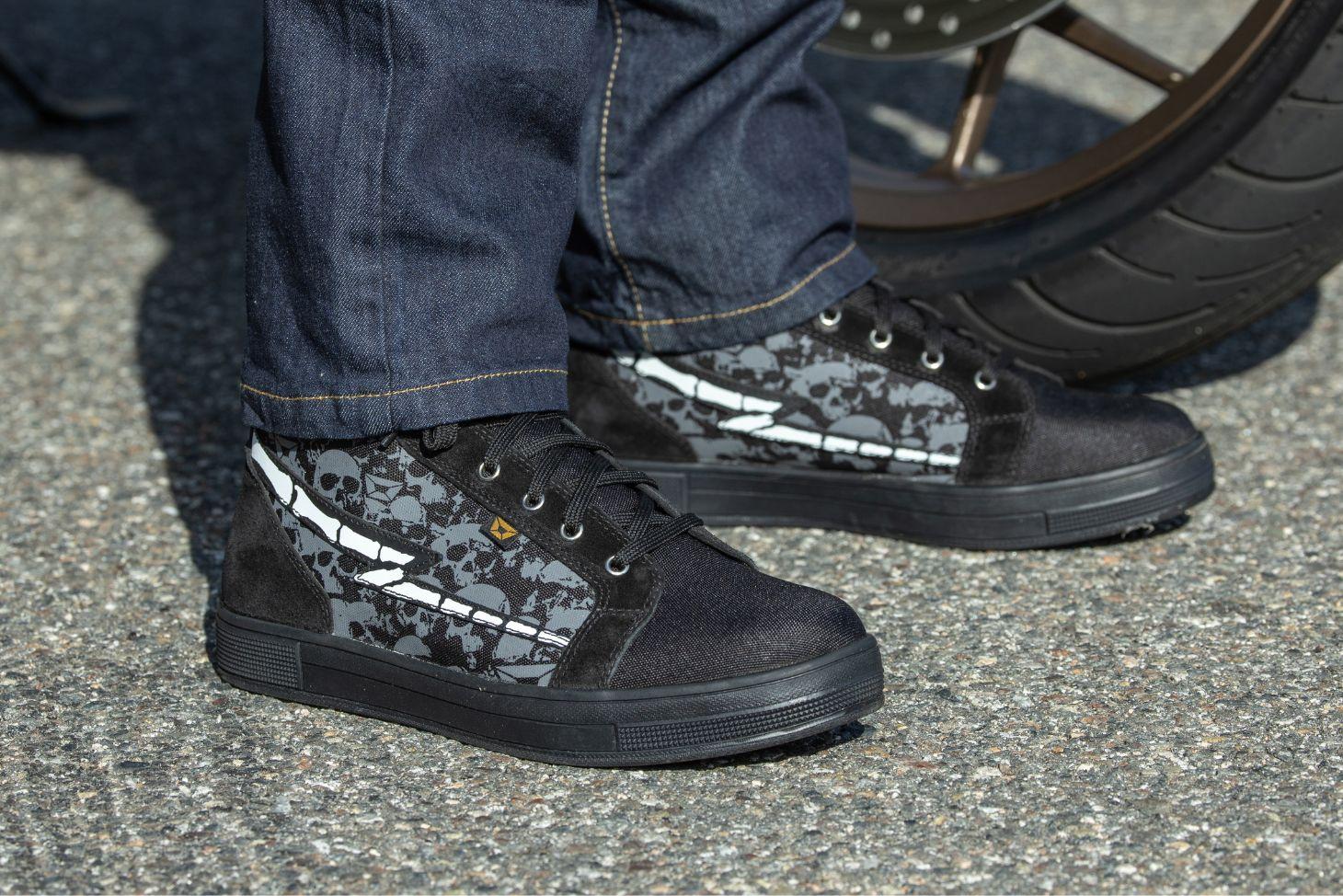 Ride with confidence and style in the Cortech Slayer Canvas Skulls Riding Shoes—built tough with molded armor and all-day comfort.