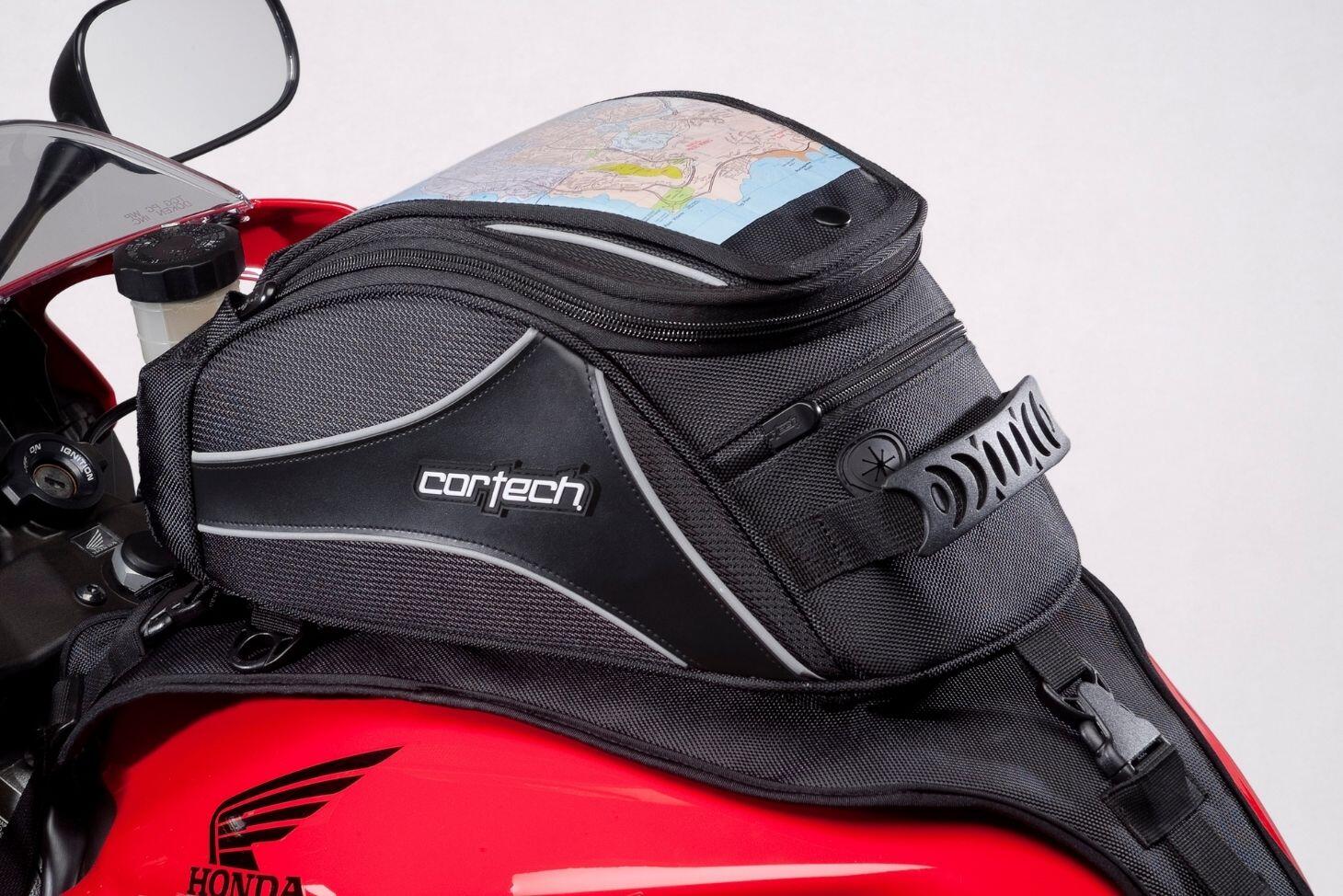 Stay organized with the Super 2.0 12L Tank Bag. This tough bag offers a removable map pocket, hydration and headphone ports, and an integrated rain cover, making it perfect for modern sport bikes.
